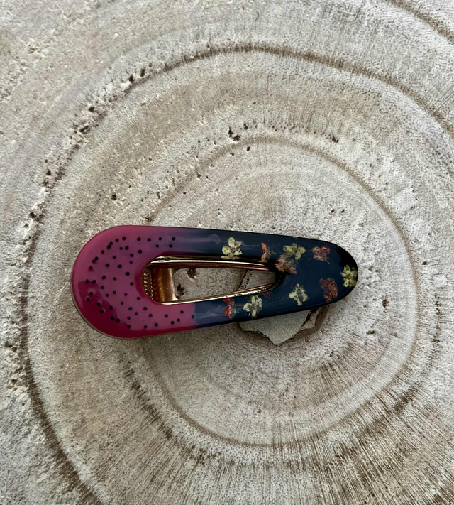 Découvrez cette barrette artisanale en résine époxy, conçue pour sublimer vos coiffures avec élégance et originalité.